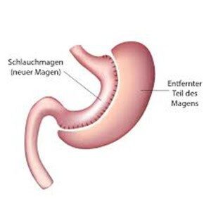 Im Rahmen der Operation wird ein großer Teil des Magens entfernt, so dass nur noch ein schmaler Magenschlauch für die Nahrungspassage übrigbleibt. Mit einem Klammernahtgerät, dem Stapler wir der Magen in Längsrichtung verkleinert.